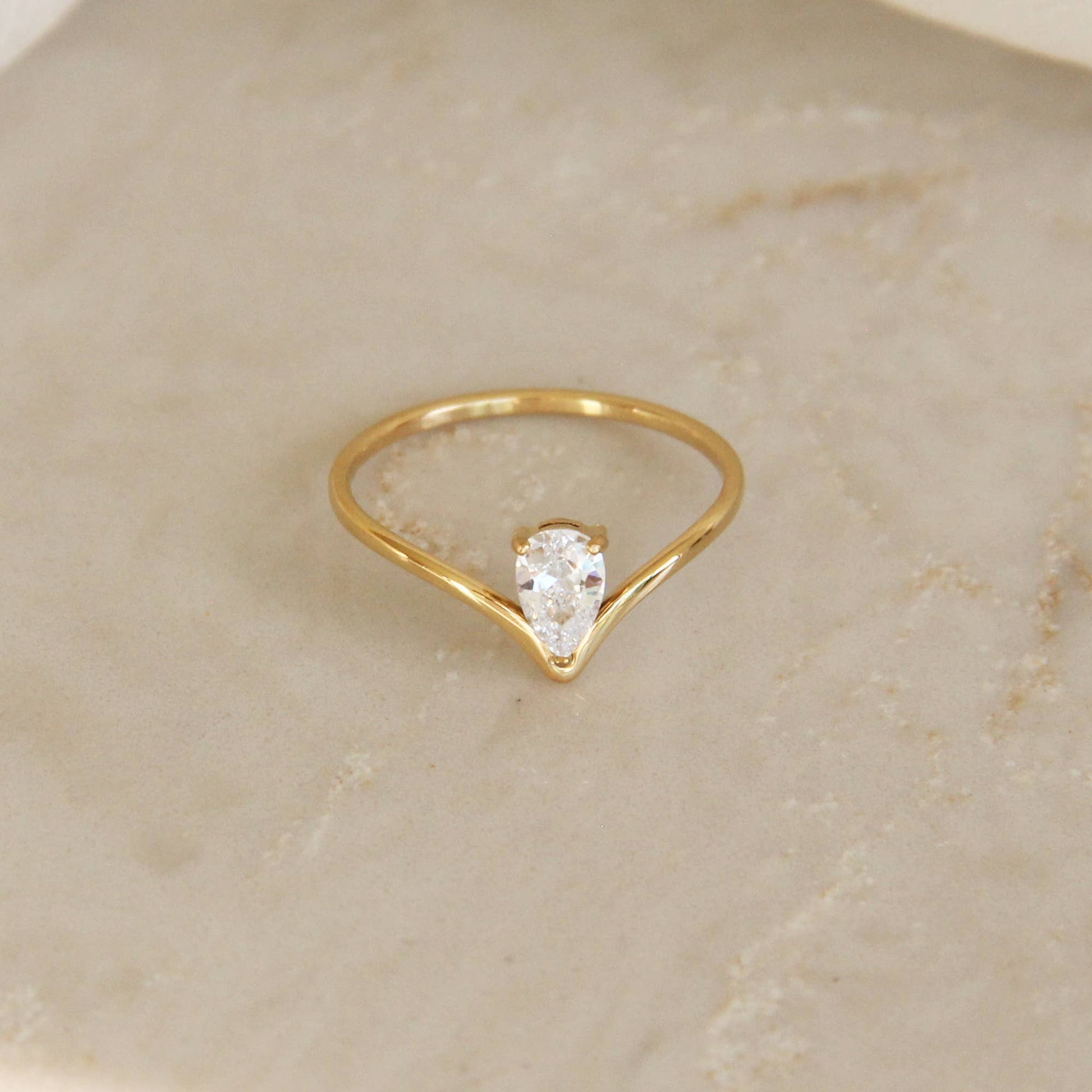 Teardrop CZ V Ring